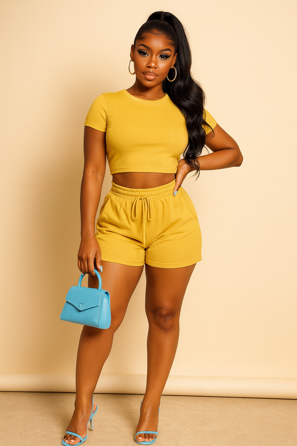 2-piece set: cropped tee and drawstring shorts