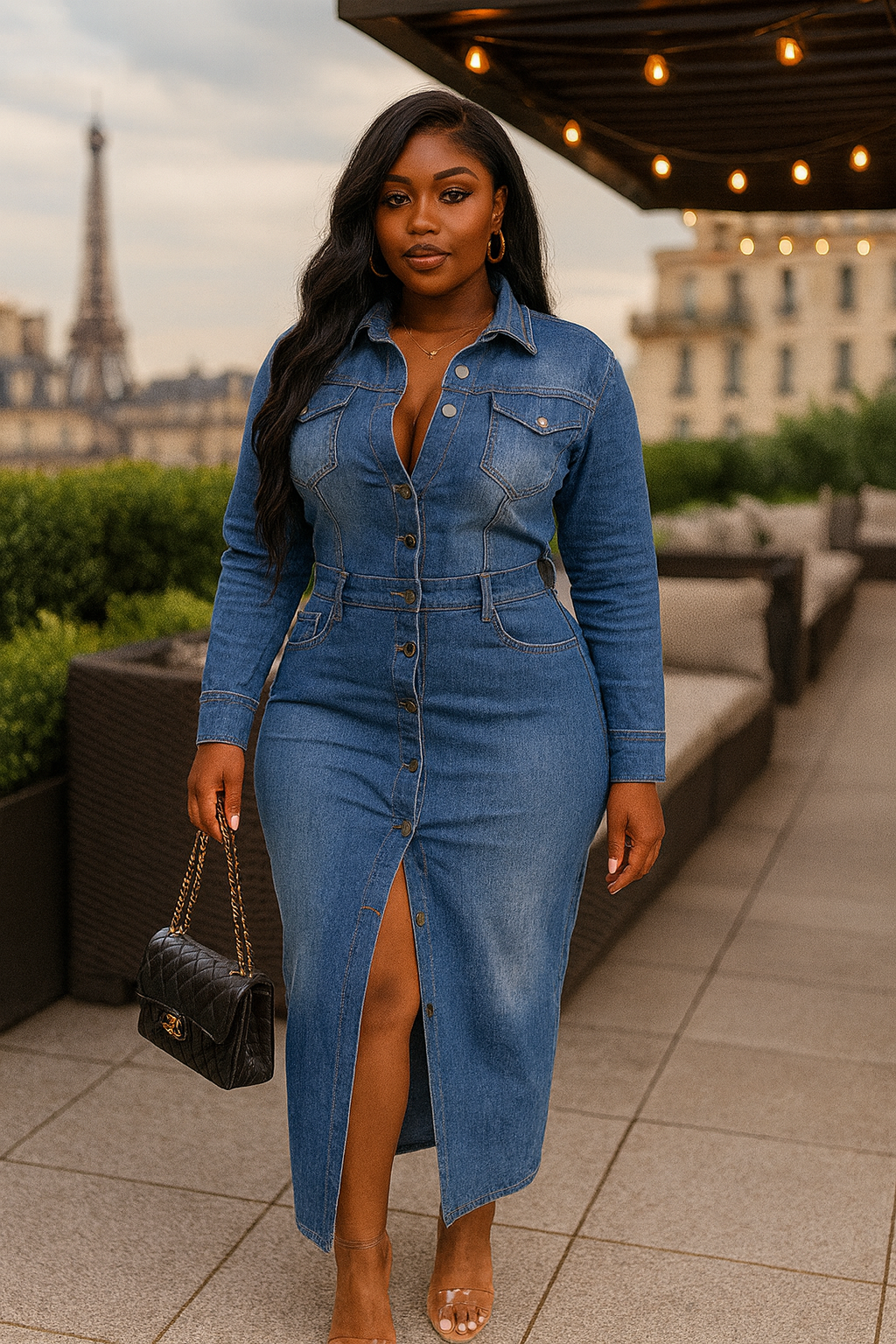 WOMEN FASHION DENIM LONG MAXI DRESS